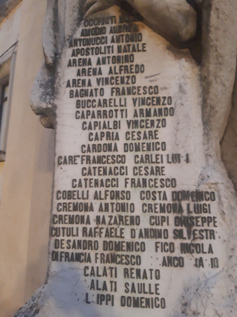 - Tra il 1922 e il 1930 Vicenzo Jerace lavora alla realizzazione in Calabria di alcuni monumenti ai caduti della Guerra 1915 - 1918, tra cui le due statue che ornano l'ingresso principale del Convitto Filangieri.