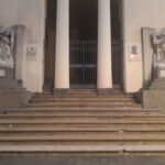 - superfici = in pietra grigia bocciardata a quattro gradoni a forma piramidale. I gradoni più bassi fungono da cordolo ai lati della scalinata in pietra bianca levigata per l'entrata al Convitto;