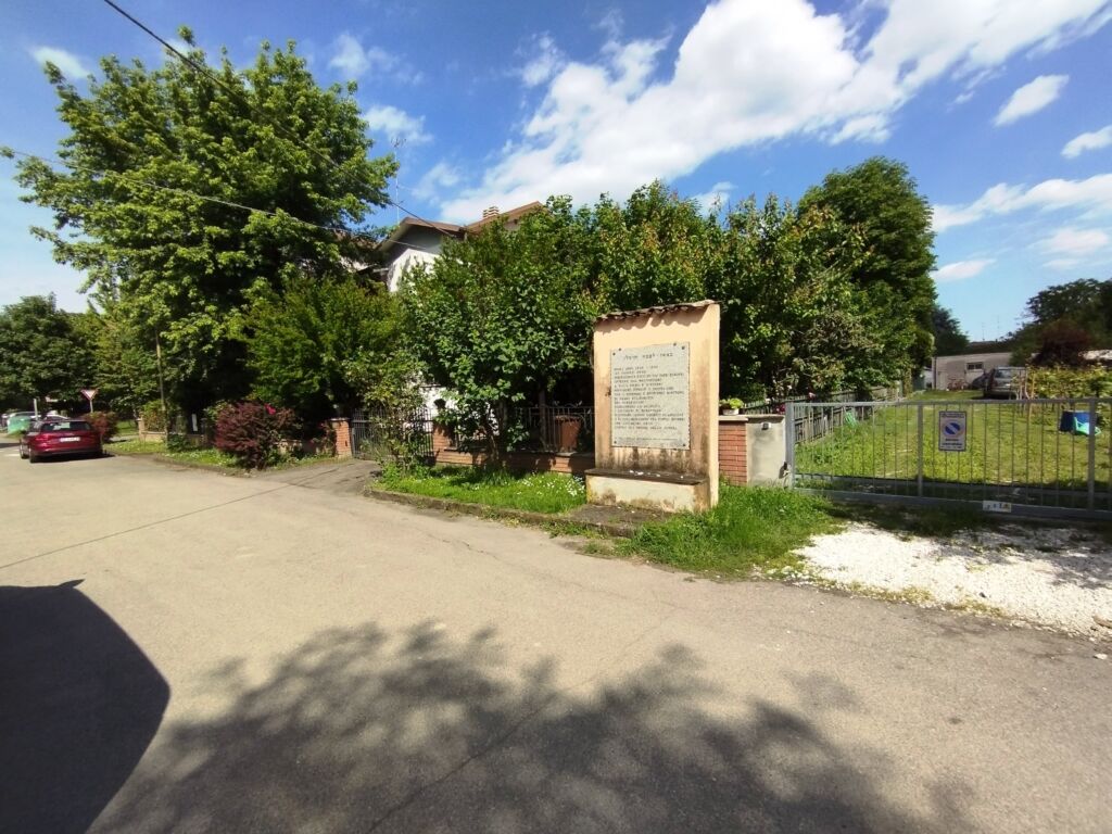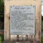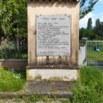 - La stele è formata da una lastra di granito grigio incastonata in un muro, intonacato e verniciato, con alla sommità una fila di coppi. L’iscrizione è in caratteri di bronzo a rilievo.