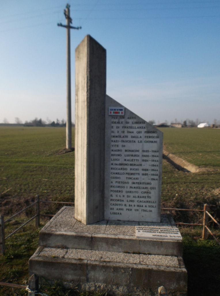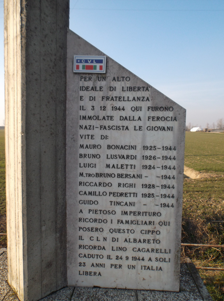 Mauro Bonacini: era nato a Modena il 2 Gennaio 1925; faceva parte della Brigata 12ᵃ Mario, della II Divisione Modena Pianura, col nome di battaglia “Mauro”. Fu catturato e tenuto in carcere, dal quale fu prelevato per essere fucilato il 3 Dicembre 1944 a San Matteo.