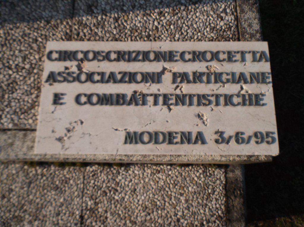 - Il presente cippo ne sostituisce un altro usurato dal tempo. È stato inaugurato il 3 Giugno 1995, per iniziativa della Circoscrizione Crocetta in collaborazione con le Associazioni Partigiane e Combattentistiche.