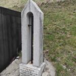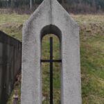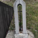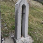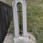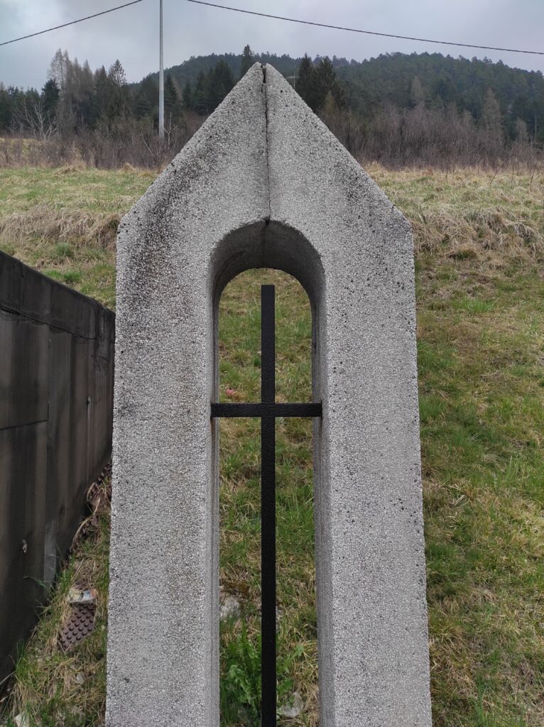 - Stele in cemento presenta al centro una croce di ferro. Lapide in marmo con lettere incise.