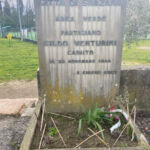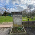 - Stele in pietra con applicazione di lettere metalliche e fioriera in cemento