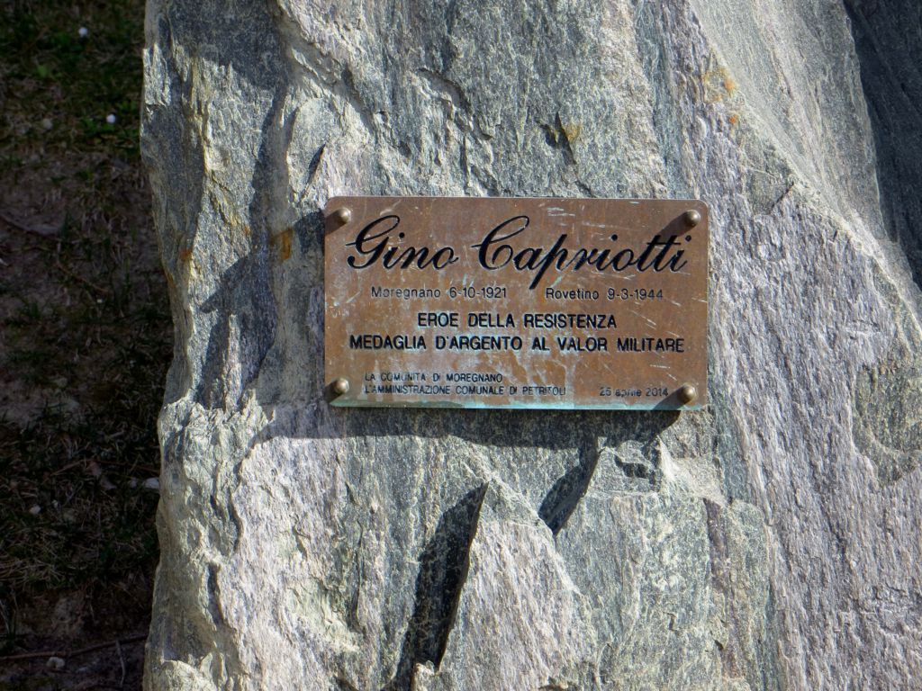 Questa pietra della memoria è stata voluta dalla comunità del piccolo borgo di Moregnano quando qualcuno scoprì che il giardino pubblico del luogo era in origine l’orto della casa in cui nacque il patriota Gino Capriotti.