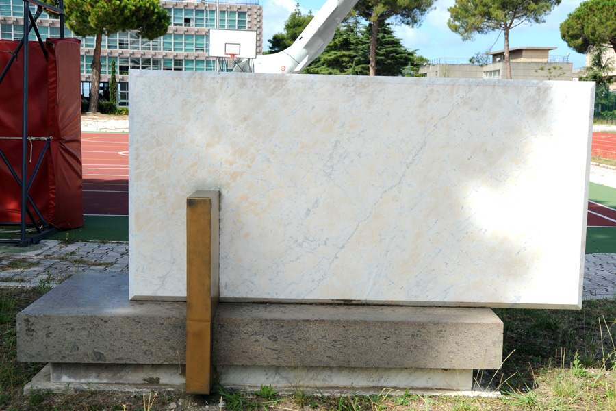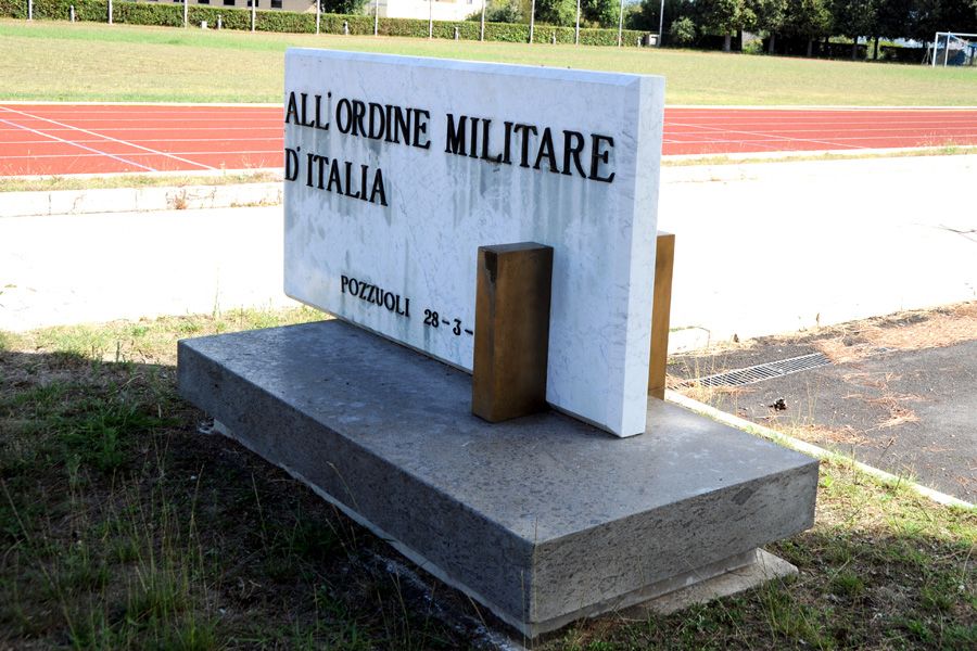 - Marmo per la lapide; pietra grigia per la base; bronzo per le lettere