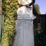 - Stele in cemento su cui sono poste le lapidi. Quella superiore con scolpito un elmo e simboli che richiamano le forze armate; le altre due di forma e dimensioni diverse con la dedica e i nomi.