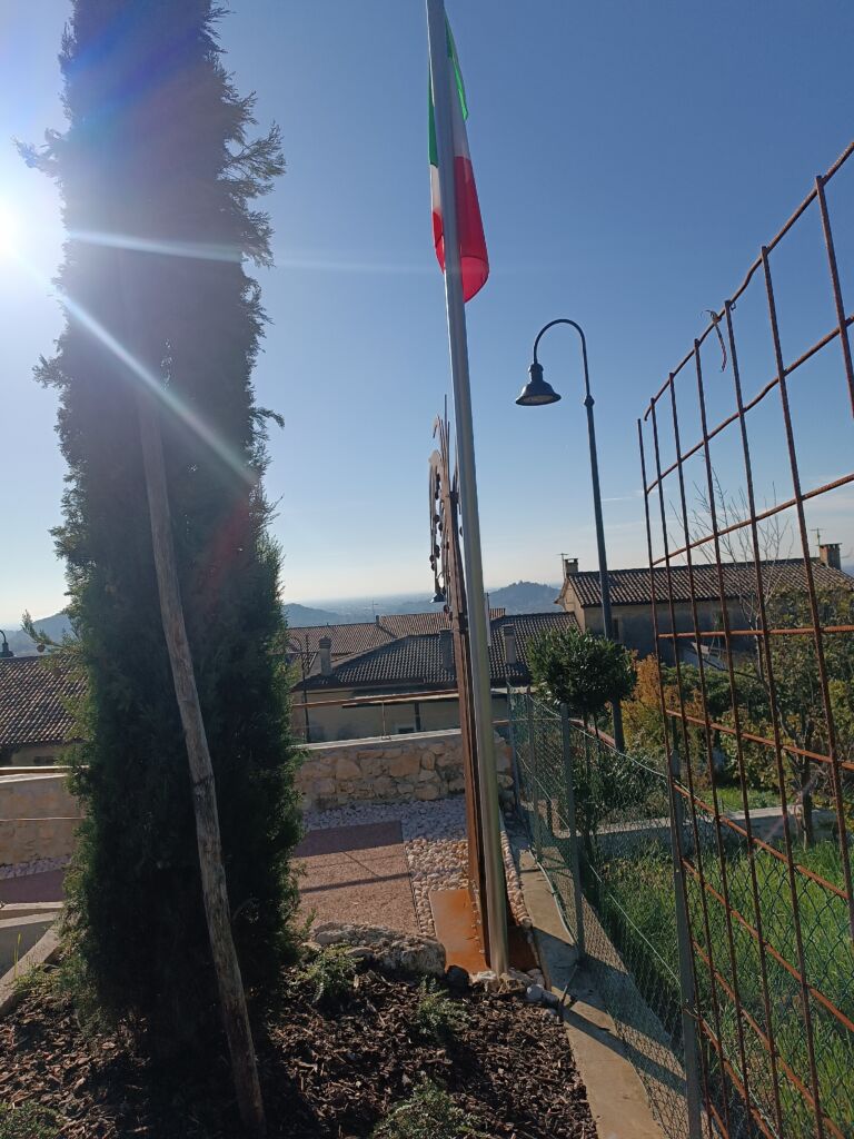 Una targa in plexiglass e un pilone per la bandiera completano il monumento.