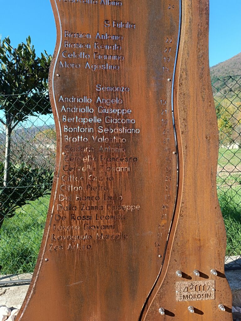 Spezzamonte Giuseppe Bruno dopo l’8 settembre aiuta il papà nella gestione della malga in Val dee Foje, durante il Rastrellamento riesce a nascondersi, ma poi decide di consegnarsi in piazza a Borso per avere salva la vita. Viene deportato a Dachau e morirà a Muhldorf il 23 dicembre 1944 a 19 anni.