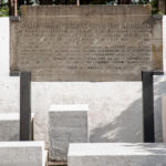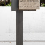 Steli in cemento; iscrizione in ottone.