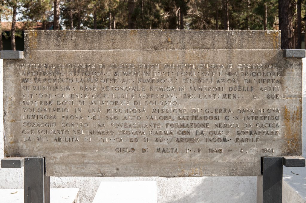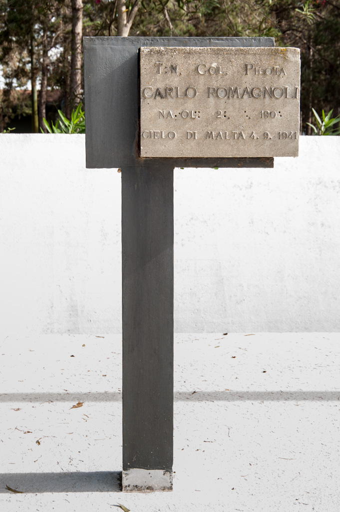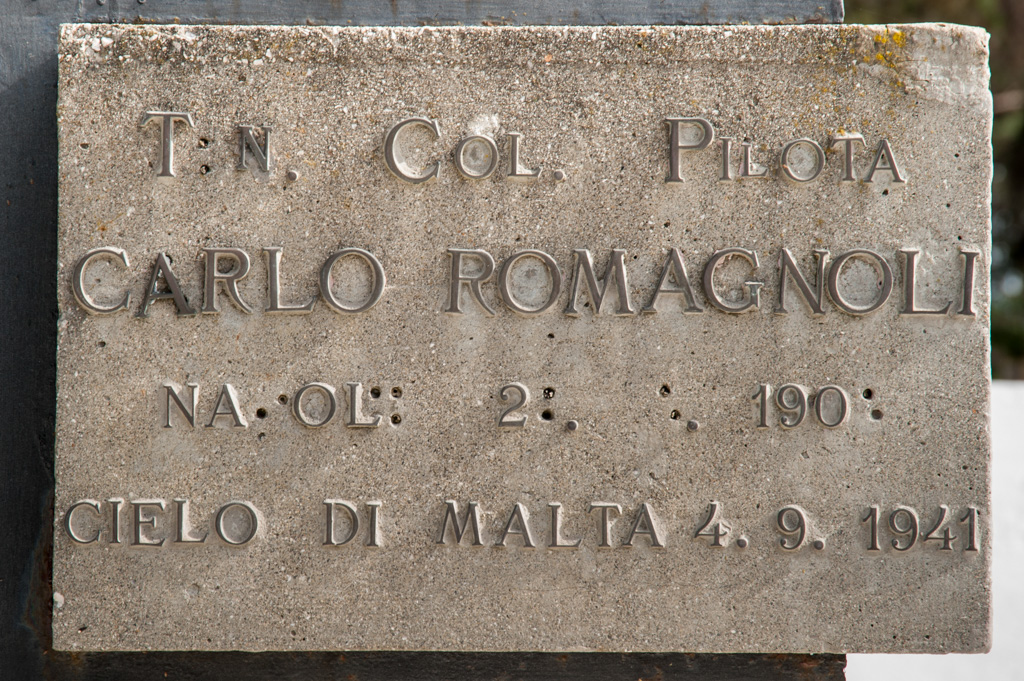 Steli in memoria del T. Col. Pil. Carlo Romagnoli per le eroiche gesta compiute nel corso della seconda guerra mondale nei cieli del Mediterraneo, dove l'Aviatore trovò la morte.