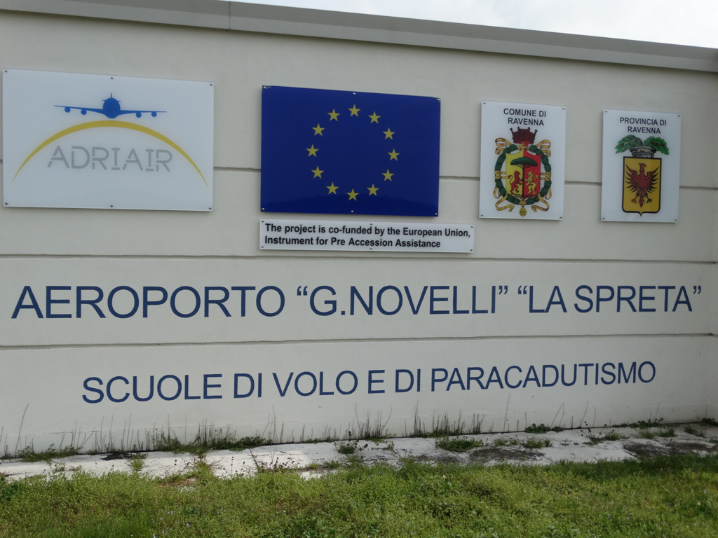 - Sulla parete sono apposte le targhe in plexiglass relative ai partner che hanno concorso all'inserimento dell'area aeroportuale in un finanziamento IPA della comunità europea, non pertinenti con il censimento delle pietre in corso.