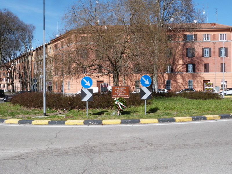 - Per ricordare le migliaia di bambini, donne e uomini che, nelle terre di Istria, Fiume e Dalmazia furono cacciati dalle loro case, assassinati, gettati vivi nelle foibe dalle milizie del maresciallo Tito, vittime di una pulizia etnica a partire dal 1943, la rotonda, posta all’intersezione tra Corso Isonzo, Corso Piave e via Piangipane, è stata intitolata ai Martiri delle Foibe e dell’esodo Giuliano Dalmata.