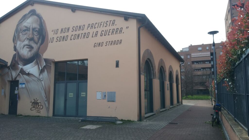 - Si trova sulla parete laterale dell'edificio conosciuto come "Casa per la Pace"