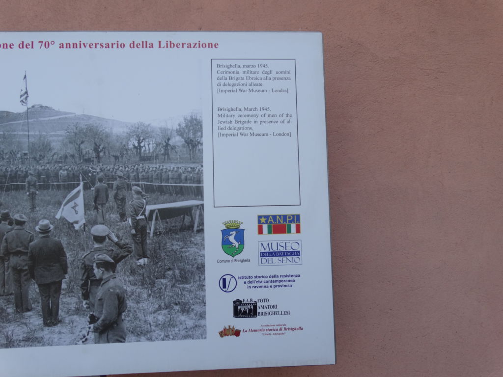 - Nel 2015, il comune di Brisighella unitamente all'ANPI, al Museo della battaglia del Senio, all'Istituto storico della resistenza e dell'età contemporanea di Ravenna, ai fotoamatori brisighellesi e all'associazione culturale "la memoria storica di Brisighella", celebrò il settantesimo anniversario della Liberazione posizionando in luoghi precisi del territorio comunale dei manufatti in acciaio recanti impresse diciture e incisioni di riproduzioni fotografiche commemorative di momenti storici legati alla seconda guerra mondiale