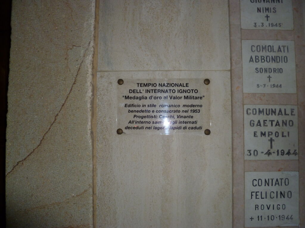 - Il Tempio dell’Internato Ignoto, o chiesa parrocchiale San Gaetano da Thiene, è sorto nel 1953 per ricordare gli IMI che non fecero ritorno dai Lager nazisti. Esso si trova a Terranegra, un quartiere del comune esterno di Padova, nell’area della parrocchia fatta ricostruire dal parroco don Giovanni Fortin al suo ritorno da Dachau. In obbedienza al voto fatto nel lager, don Fortin volle che la nuova chiesa fosse eretta a onorare il ricordo dei circa 70.000 italiani morti durante la deportazione e la prigionia. Al centro e ai lati del viale che conduce al Tempio sono stati collocati da ANEI (Associazione Nazionale ex Internati nei Lager nazisti), trenta cippi in trachite con i nomi di campi di concentramento e di sterminio. vicino al pennone della bandiera italiana, in cima alla gradinata d'ingresso c'è un plinto di trachite martellata con inciso il motto ANEI: "Mai più reticolati nel mondo". Al tempio si accede attraverso tre cancelli in ferro la cui struttura richiama i reticolati dei Lager. sulle pareti interne ci sono otto grandi lapidi di marmo con incisi i nomi dei Lager più conosciuti. Tutto intorno sono collocate le "marmette", piccole piastrelle che riportano i nomi di Internati Militari Italiani deceduti nei Lager o dopo il rientro. La cappella di sinistra custodisce la salma dell'Internato Ignoto. La salma fu esumata da una fossa comune a Colonia, in Germania. Il feretro fu portato dapprima a Roma, all'Altare della Patria, e poi solennemente traslato a Padova nel 1953 dove venne tumulato nel pronao del Tempio. Il sepolcro è sormontato da una scultura in cotto che rappresenta il Cristo morto dello scultore Mirko Vucetich. Le sembianze di Cristo richiamano le sofferenze dei prigionieri che patirono la fame, gli stenti, il freddo e le violenze nei Lager. Nel 1997 all'Internato Ignoto è stata conferita dal Presidente della Repubblica la Medaglia d'Oro al Valor Militare alla Memoria. La presenza dell'Internato Ignoto così decorato fa sì che il Tempio sia considerato dallo Stato Italiano come Sacrario nazionale.