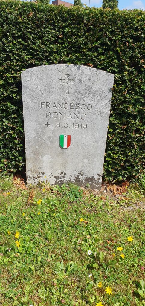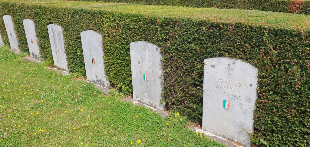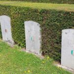 - Le tombe dei soldati hanno una lastra di pietra chiara centinata in alto, su cui sono incisi i nomi dei caduti e la loro data di morte.