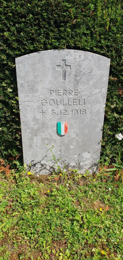 Sotto la data di morte ogni lapide ha uno scudetto con la bandiera della nazionalità del caduto.