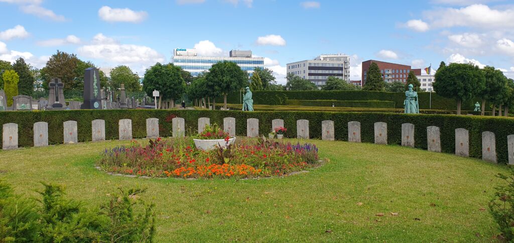 - Il sacrario militare, presente nel cimitero di Ixelles, contiene 397 tombe di caduti di Belgio, Francia, Russia, Gran Bretagna e Italia. Esso è costituito da file parallele di tombe, separate da sedici siepi di tasso. Ai quattro angoli del parco, di forma trapezioidale, ci sono quattro statue di soldati in bronzo poste a sentinella dei caduti. Esse furono realizzate dagli scultori Charles Samuel, Marcel Rau, Isidore De Rudder e Jules Herbays. Il memoriale fu inaugurato nel 1923.