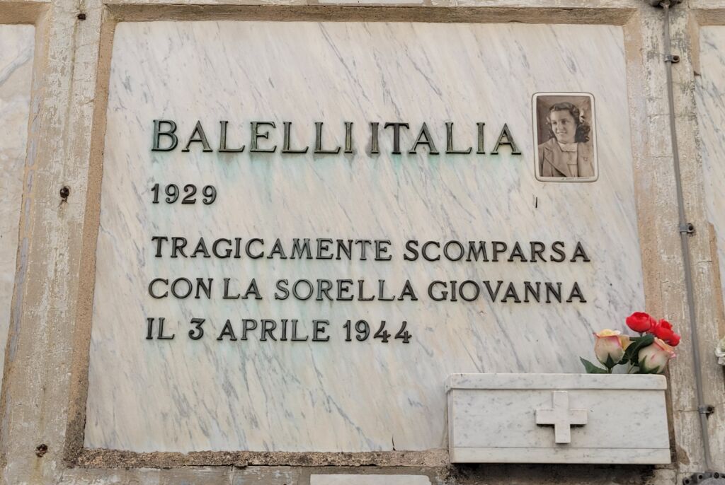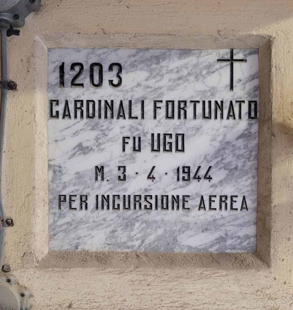 Lapide sul loculo di Giuseppe Marcolini (Macerata, 25.09.1912-03.07.1944), vittima civile di mina tedesca. Il manufatto è di forma rettangolare, in marmo chiaro, con iscrizione e simboli a bassorilievo e foto tonda incornici ...